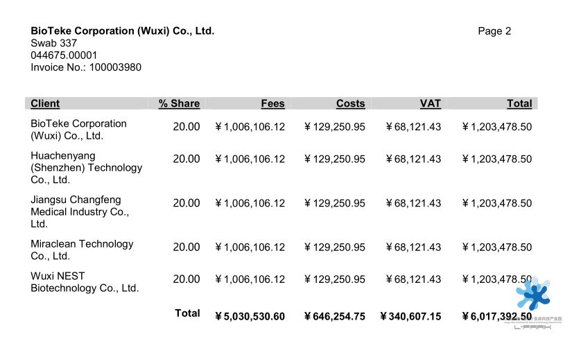 “337調(diào)查”訴訟其中一份賬單
