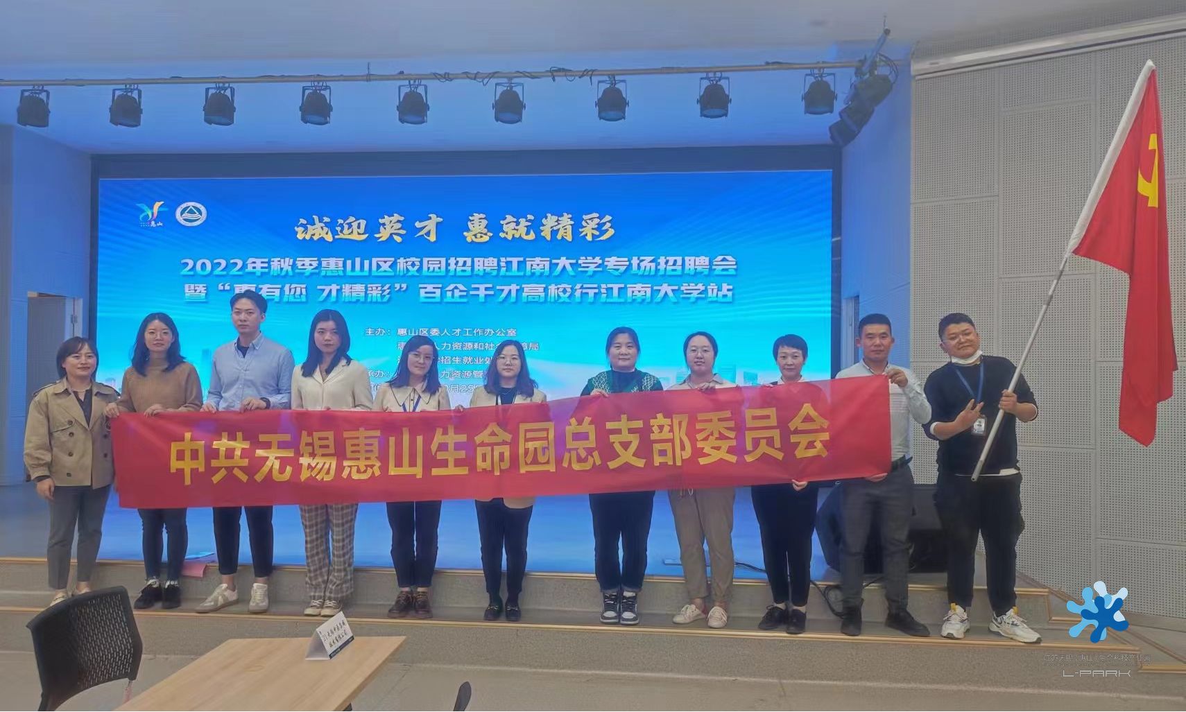 10月25日下午,2022年校園招聘惠山專場在江南大學蠡湖校區北區大學生活動中心舉行,惠山生命園生基醫藥、西比曼生物、吐露港、孚維爾生物等14家園區企業在園區黨總支委員會的組織下參加招聘。