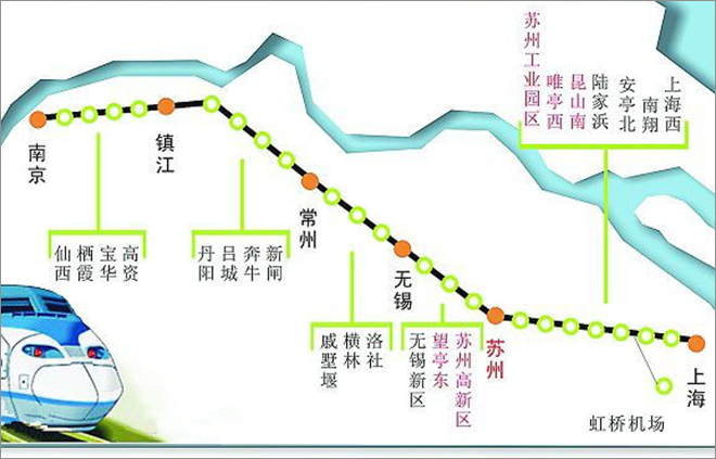 滬寧城際鐵路,運行時速350公里/小時,至上海30分鐘